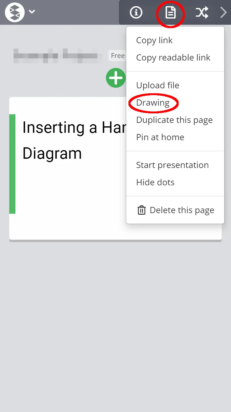 icon on the right side of the screen and select “Drawing” (red circle) to display the drawing screen.