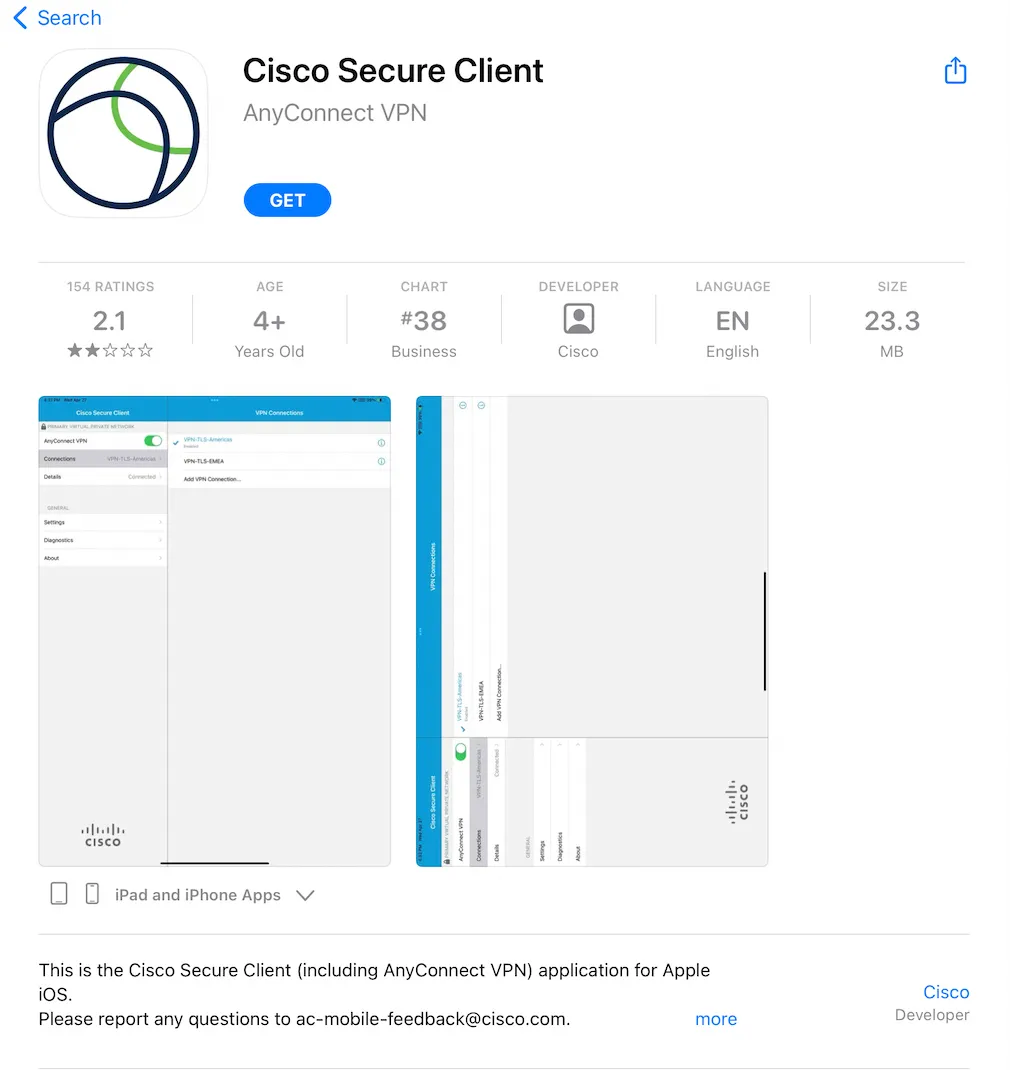 Step A: Access the App store and install the app Cisco Secure Client app from Cisco.