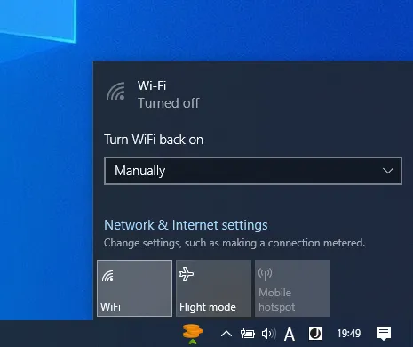 Select the globe icon in the taskbar, and then select the fan-shaped “Wi-Fi” icon to enable the Wi-Fi function.