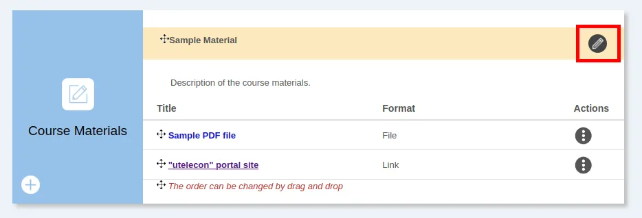 - To update: Edit the course material in the same way as you did when registering the course materials.
