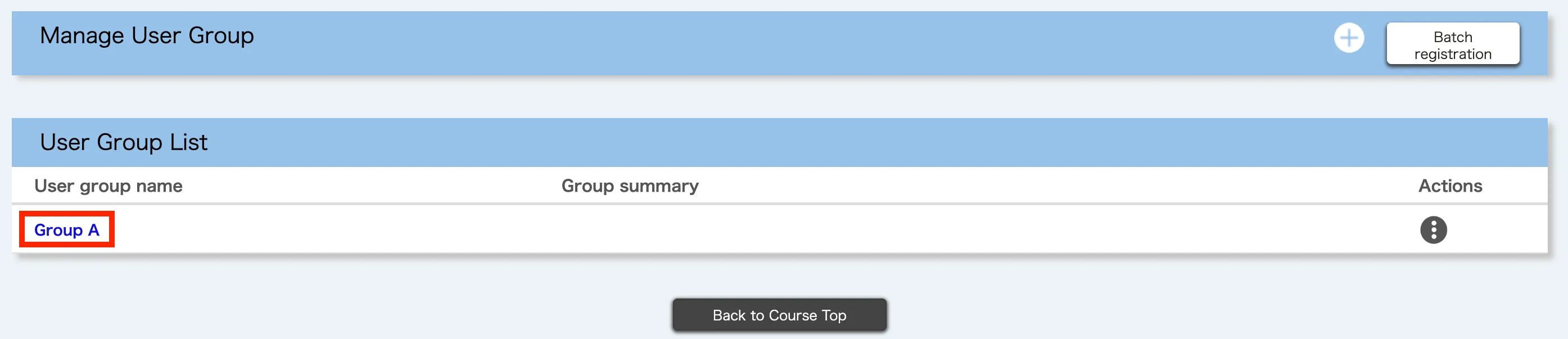When you register a course group, a user group with members who are enrolled in each of the grouped courses are automatically registered with the name “(academic year)_(department code)_(timetable code)-group”. This is called the “default user group”. If the enrolled students are changed on UTAS after registration, the changes will be reflected in the list of members of each default user group through system integration.