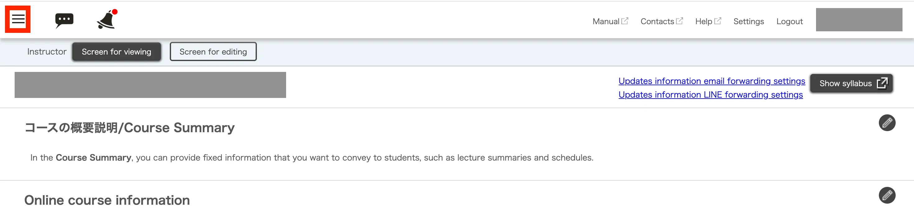 Click on the icon with three lines in the top left corner while the course you want to use is open.