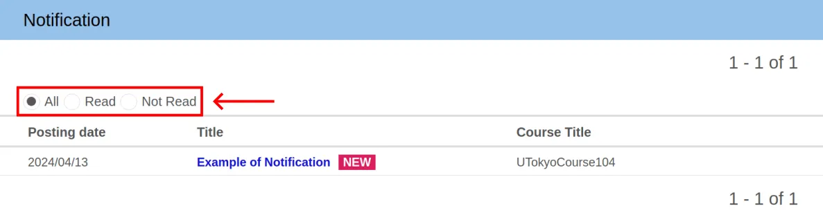 You can set whether or not to receive these notifications for each course. For more information, please refer to “Settings to receive notifications in the UTOL”.