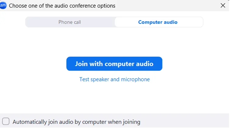 • When you join, automatically connect to audio on your computer:by checking the box, you can save yourself the trouble of confirming the dialog for the audio selection as shown in the image below when you enter a meeting.