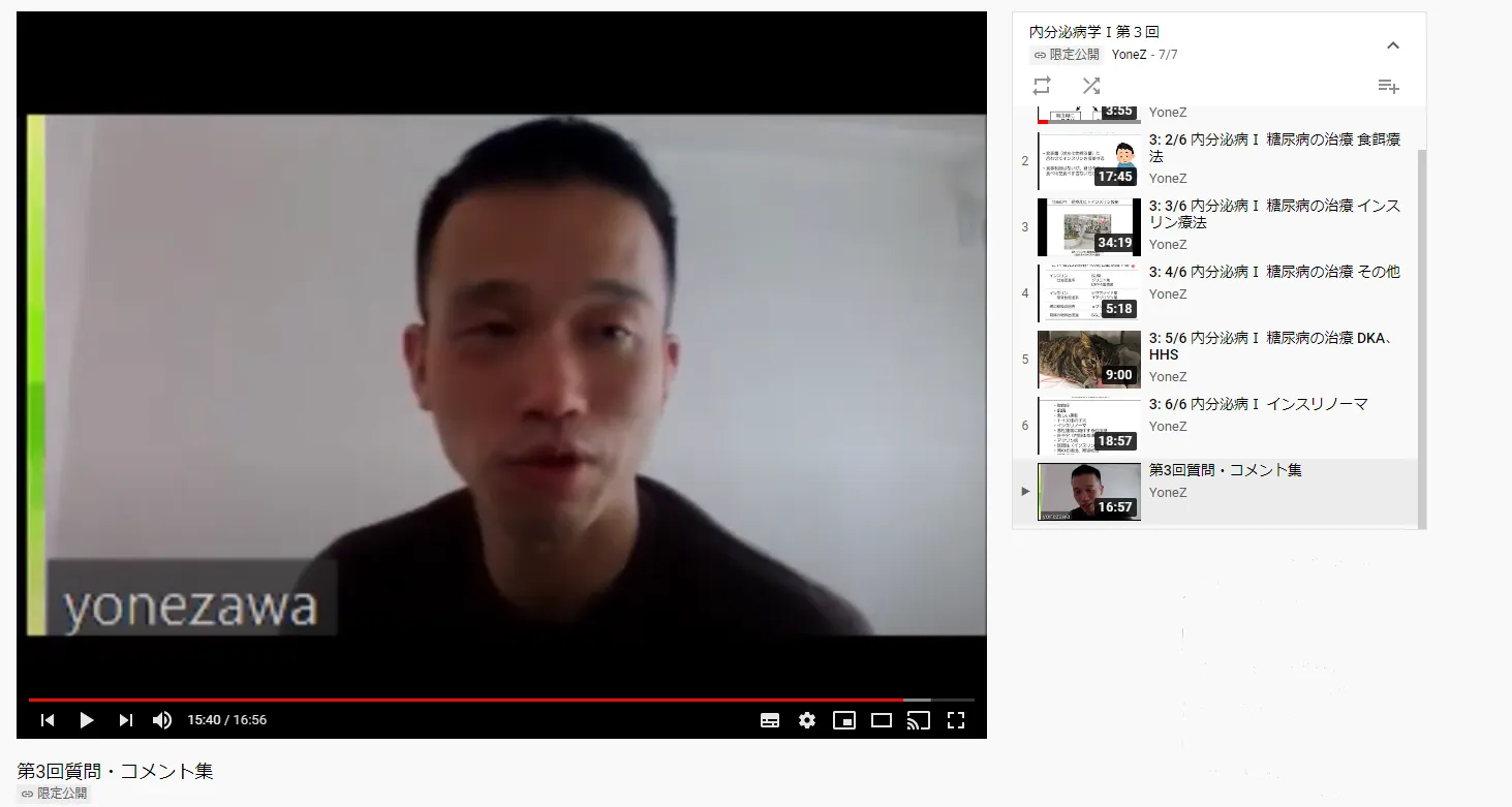 zoom でのリアルタイム授業(質疑応答)も録画しました。後でこの動画を再生リストに加えることで、学生が繰り返し見られるようにしました。