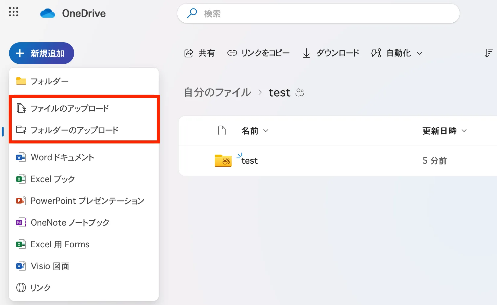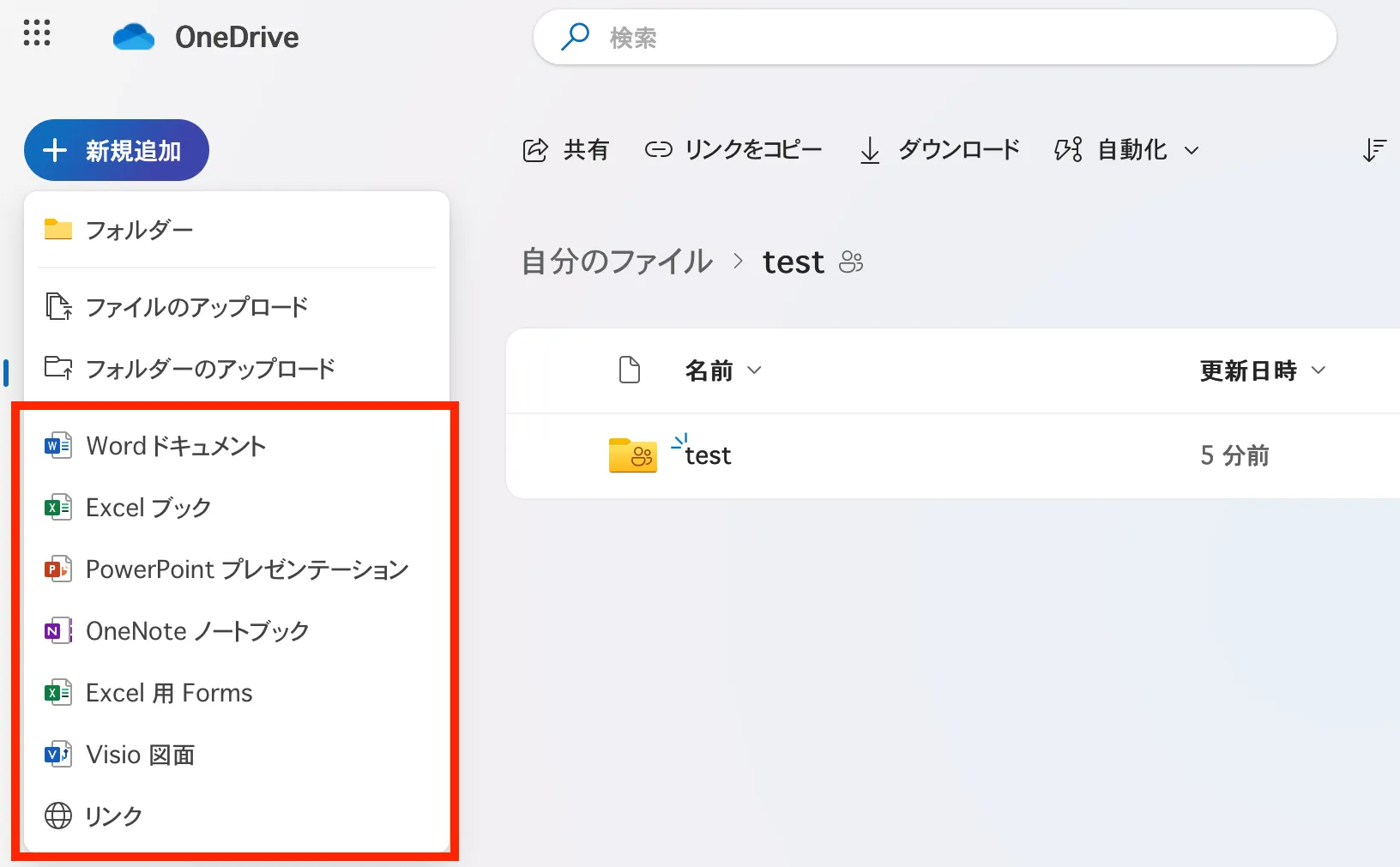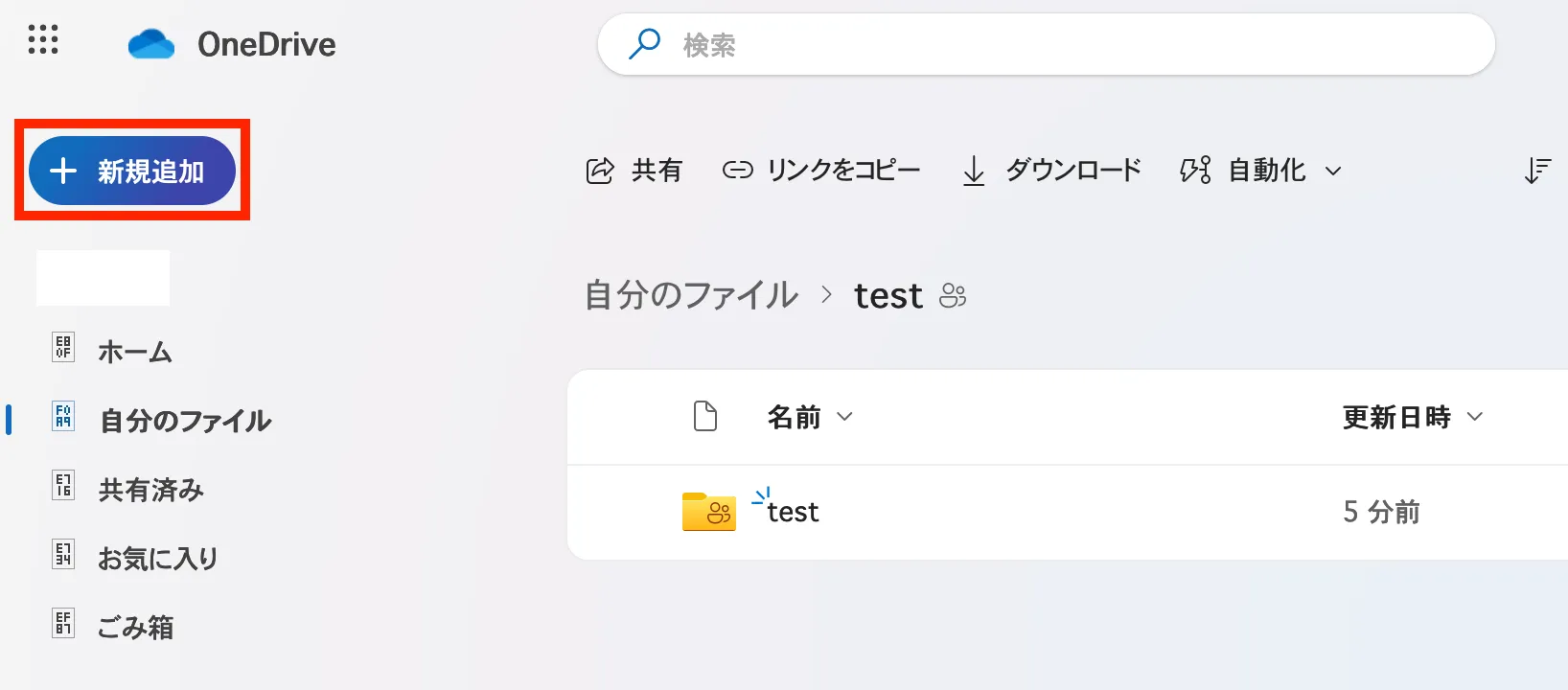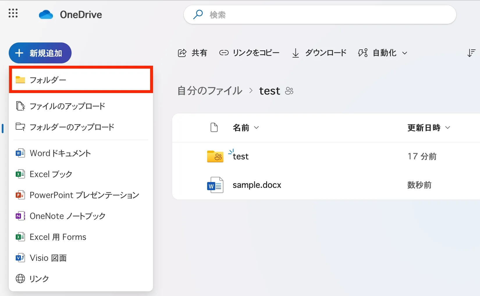 ここでは,OneDrive上にフォルダを作成する方法を説明します.