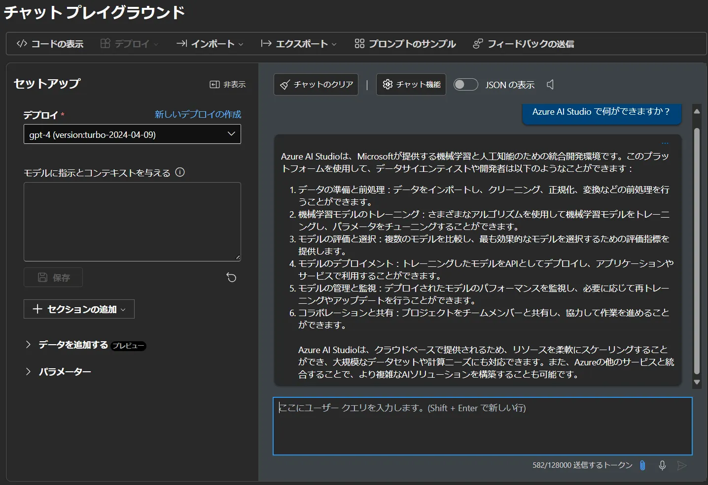 - 下図のようなチャットプレイグランドが表示されたら完了です.