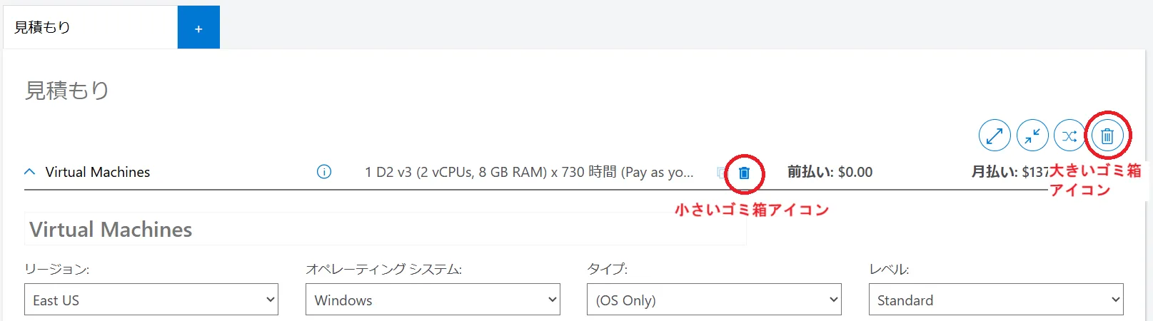 プログラムおよびオファーを選択で EA 契約を選択するための準備になります. - 仮想マシンなどの適当なサービスを選択して,追加された見積もりシートの一番下にある