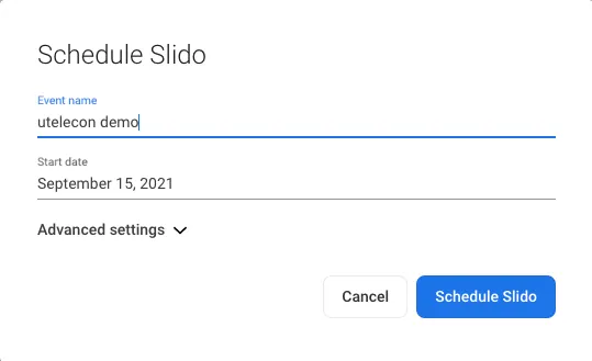 - 画面上の「Create Slido」あるいは「New Slido」を選択してから,「Event name」(イベントの名前)と「Start date」(イベントの開始日)を入力します.