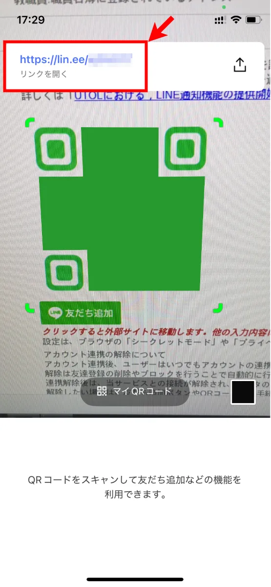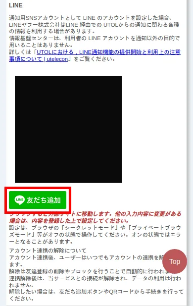 「LINE」の欄のQRコードをLINEアプリで読み込むか,「友だち追加」を押してください.