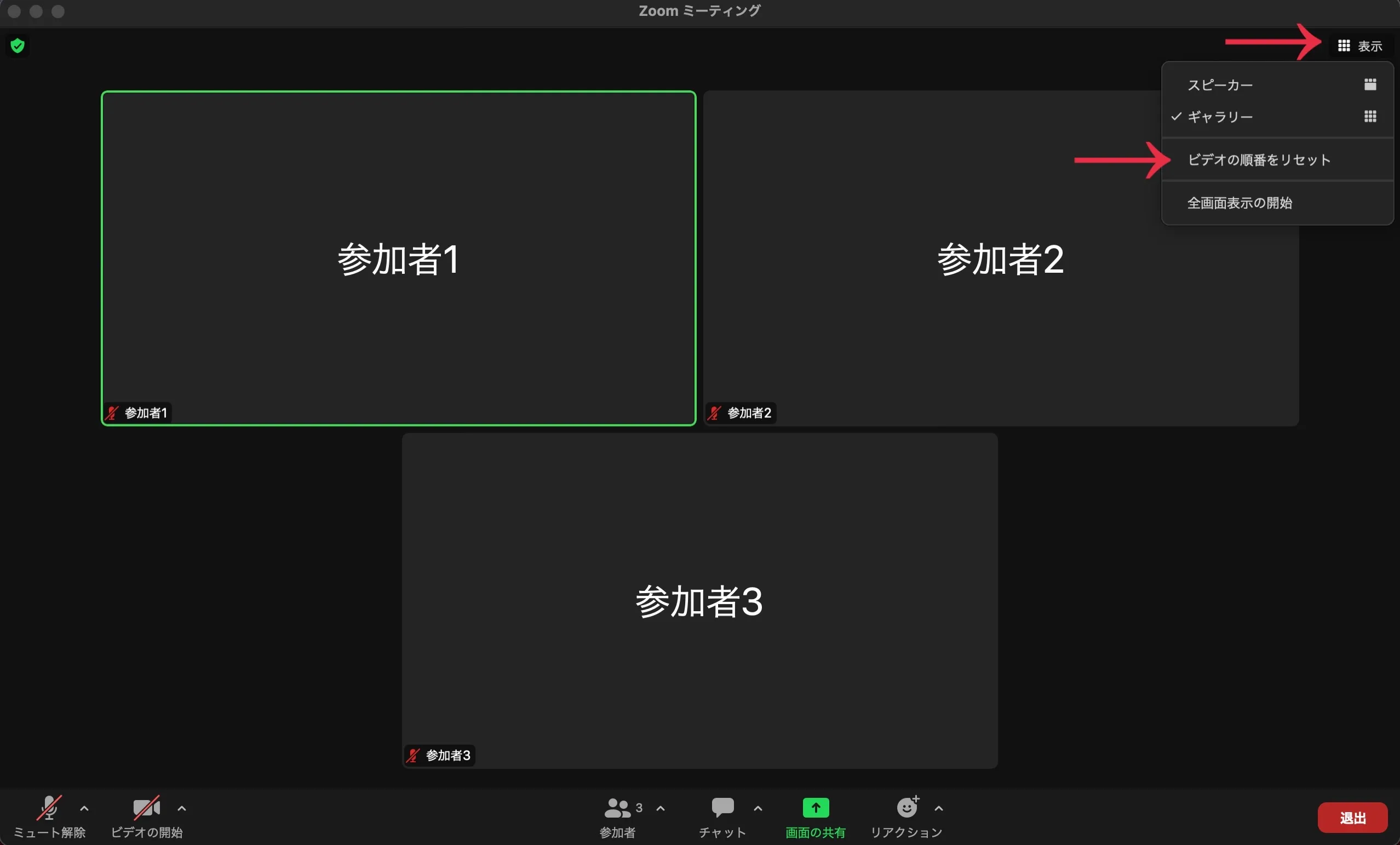 ギャラリービューでは,参加者のビデオの配置を自分好みにカスタマイズすることも可能です.配置を移動させたい場合には,移動させたい参加者のビデオをドラッグして,移動先でドロップしてください.